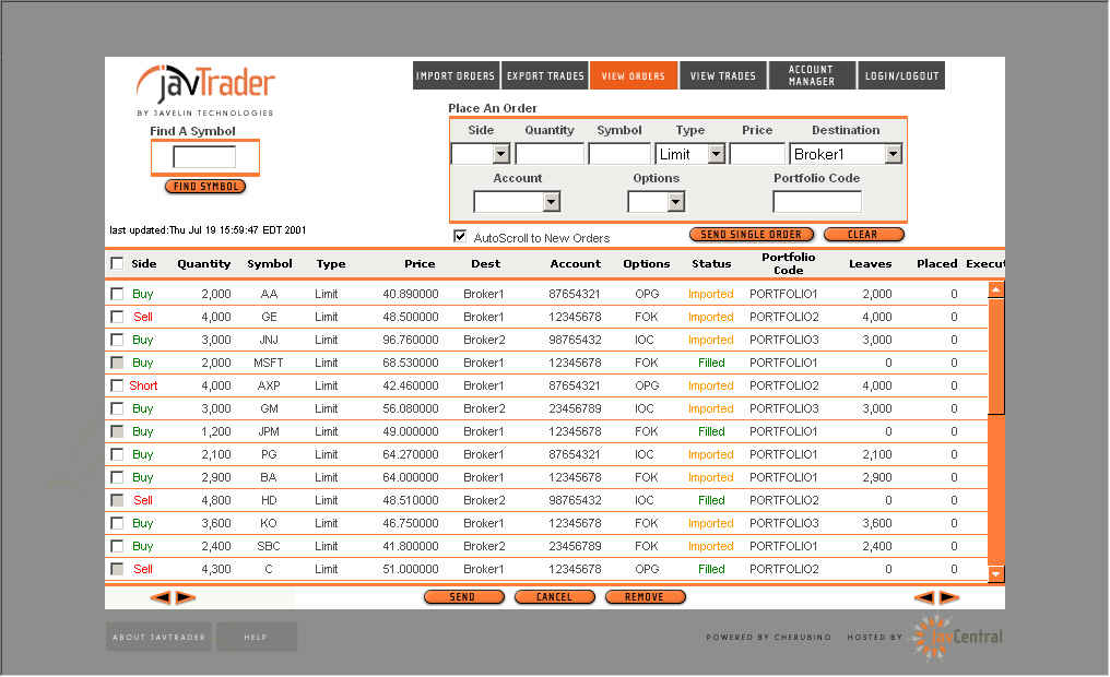JavTrader Order Blotter